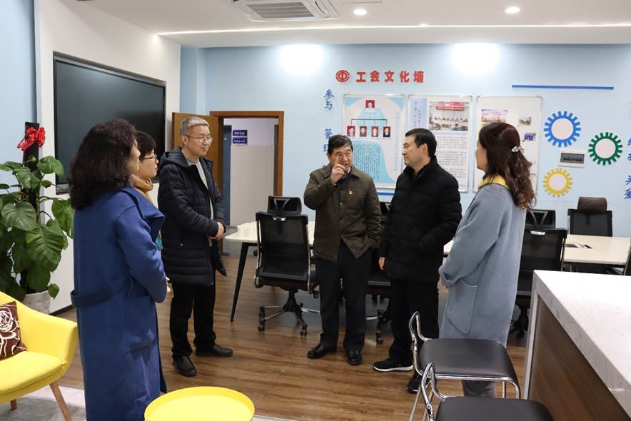 随后,吴海平一行参观了我校机械学院教工之家,并充分肯定了我校近几年教工之家建设投入工作,吴海平表示:建好基层学院教工之家是工会联系基层群众、提升教工凝聚力最好的平台和抓手,工会一定要加固好自身桥梁和纽带作用,做好职工贴心的娘家人。