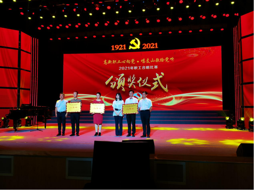 6月26日下午,“高新职工心向党 唱支山歌给党听”2021年职工合唱比赛在我校瑶湖艺术中心举行,校党委书记、校长金志农,党委副书记吴泽俊,纪委书记殷安全作为嘉宾莅临比赛现场,我校教职工合唱曲目《迎风飘扬的旗》在本次比赛中荣获二等奖。