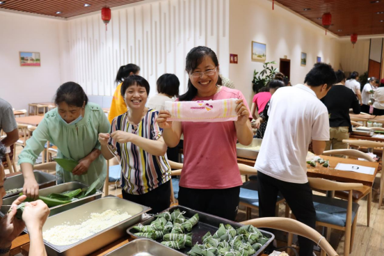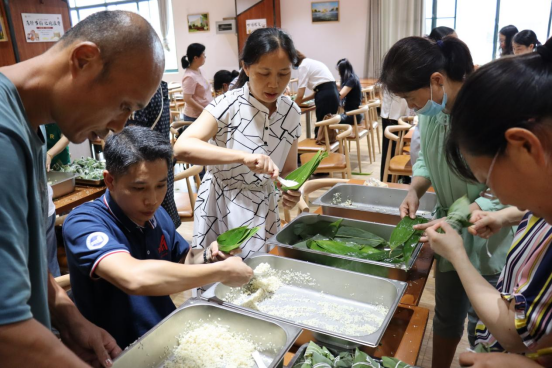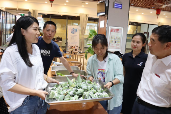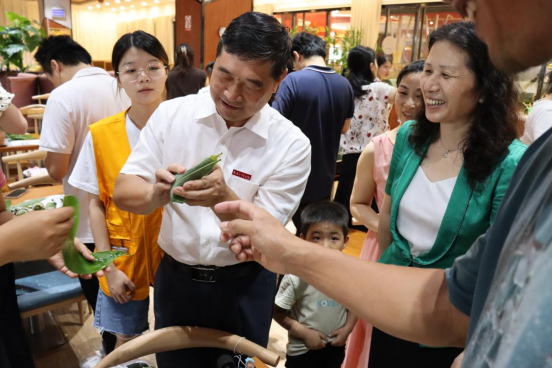 6月10日14:00,由校工会主办,后勤处承办的“爱心暖端午,粽香感党恩”教职工包粽子比赛活动在润园教职工餐厅举办,来自各分会的近百名教职工参与活动,校党委副书记吴泽俊亲临现场指导。