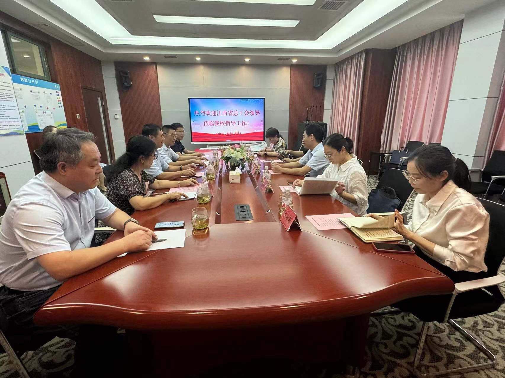 9月27下午,江西省总工会二级巡视员、省教育工会党支部书记蒋云国、江西省总工会经济技术部部长张建平、省教育工会主席宋懿非一行来我校调研模范职工之家(职工小家)和劳模工匠创新工作室创建情况。校长刘祖文、校党委副书记吴泽俊、副校长陆伟锋陪同调研。