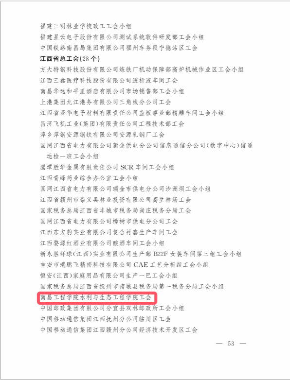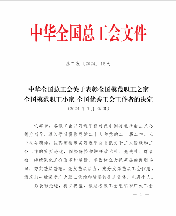 日前,中华全国总工会下发了《中华全国总工会关于表彰全国模范职工之家 全国模范职工小家 全国优秀工会工作者的决定》(总工发【2024】15号),我校水利与生态工程学院工会喜获中华全国总工会“模范职工小家”荣誉称号,这是该工会继获得全国教科文卫体系统“模范职工小家”荣誉称号之后获得的最高荣誉。