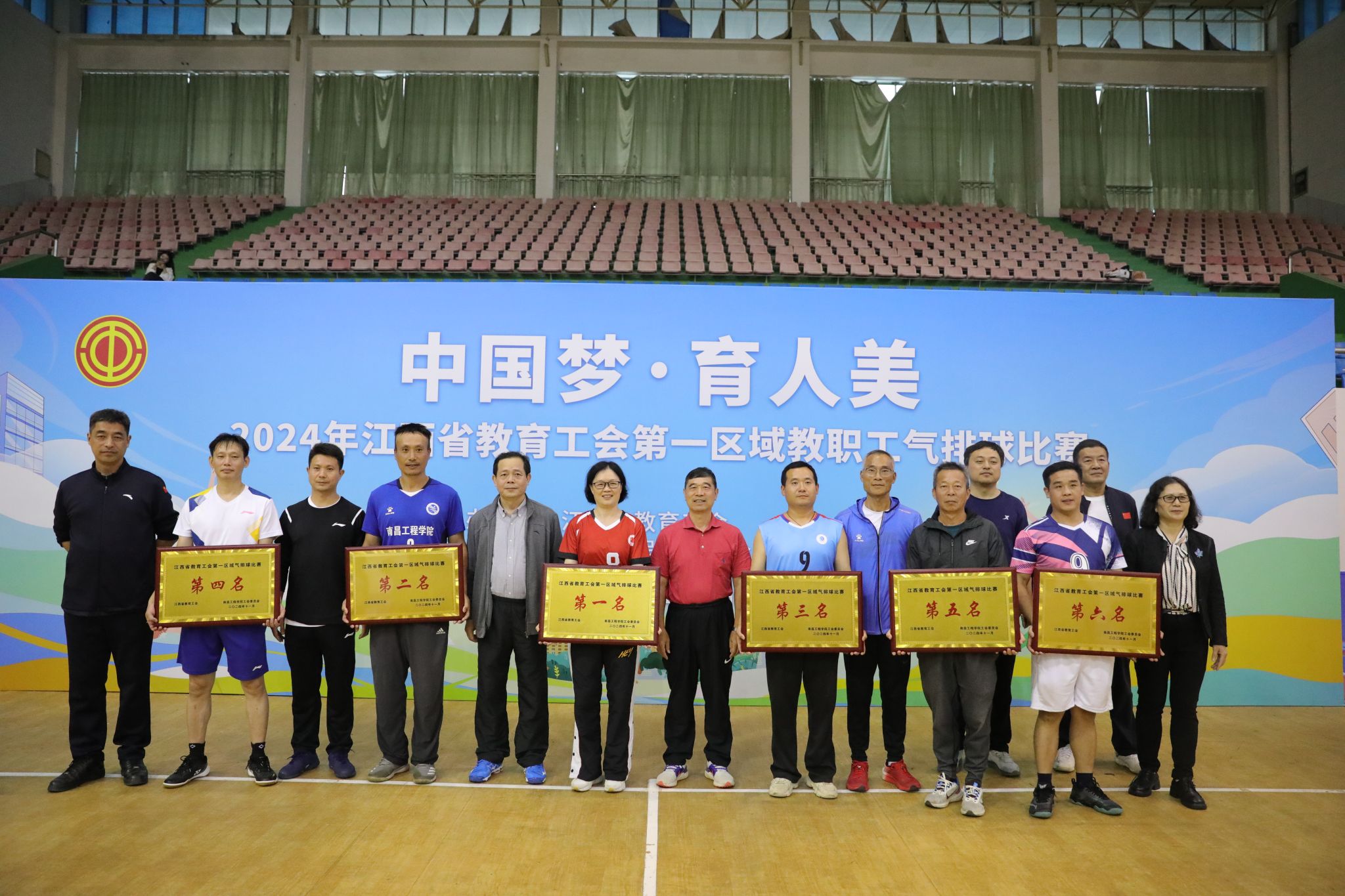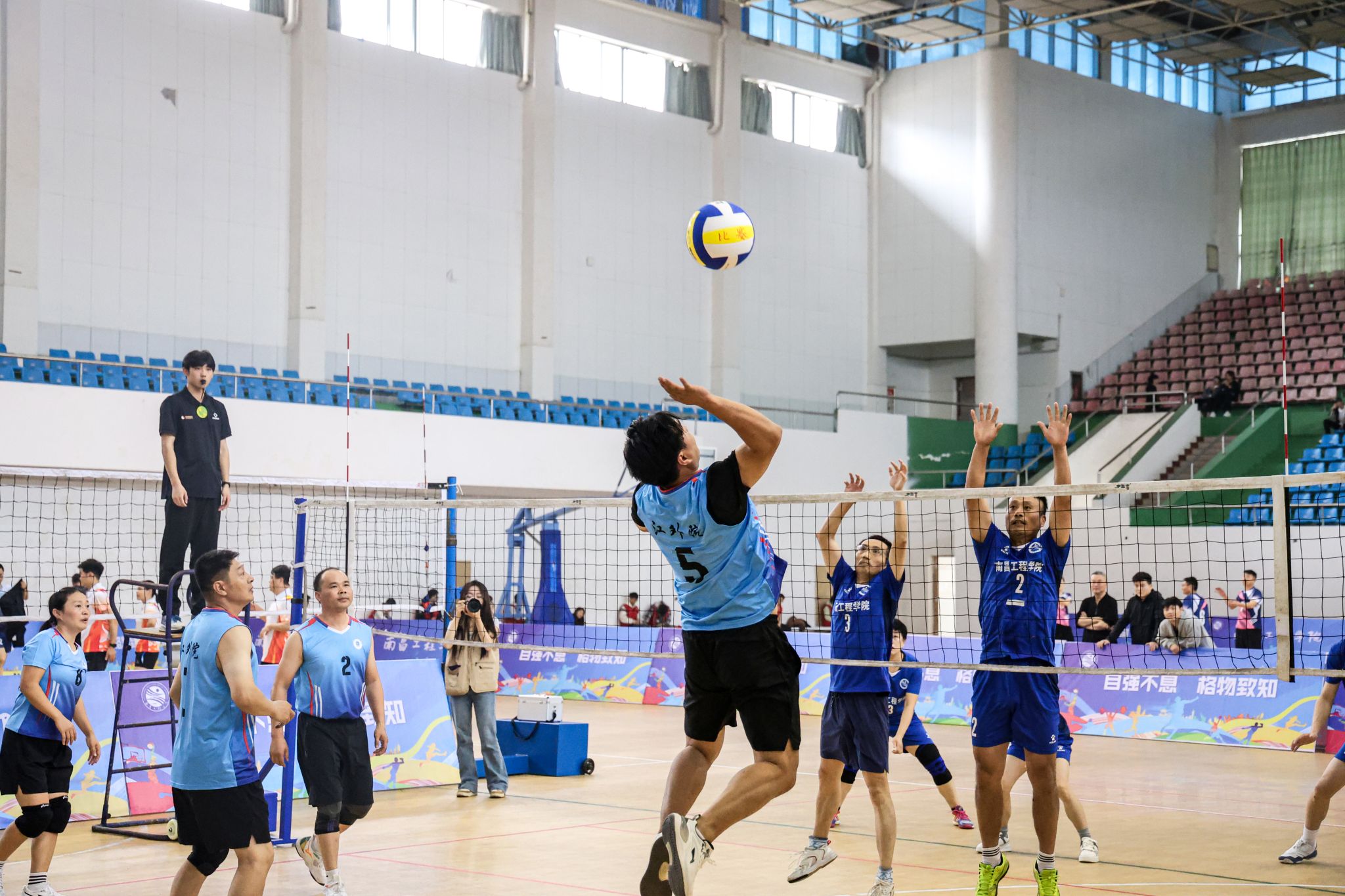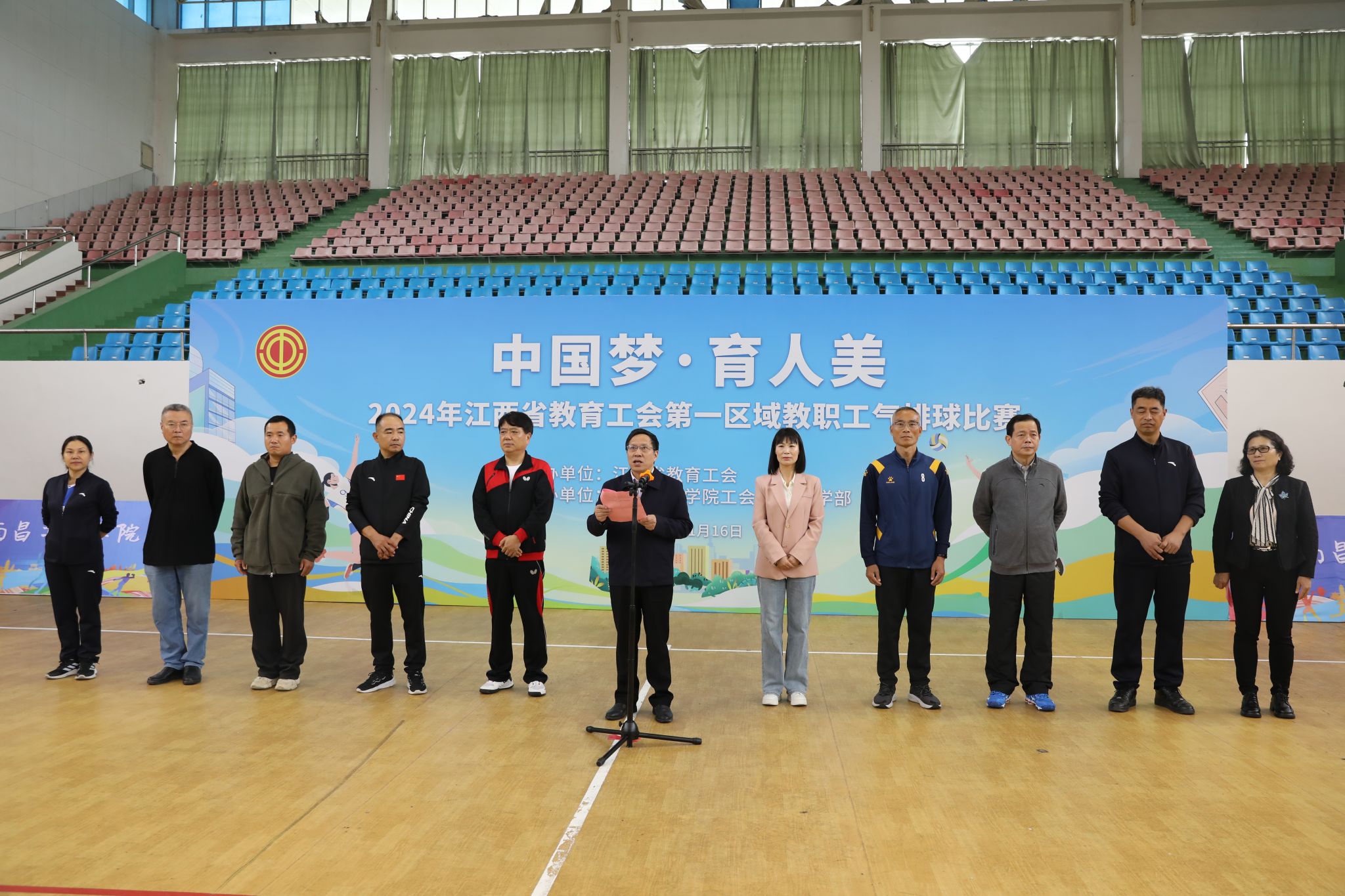 为贯彻落实习近平总书记关于体育工作的重要论述,加快推进体育强国建设的决策部署,大力推动全民健身运动,促进教职工身心健康,增强校际之间的友谊交流。11月16日,由江西省教育工会主办,我校工会、体育教学部承办的“中国梦 育人美”第一区域教职工气排球比赛在室内体育馆成功举办。来自该片区的江西师范大学、南昌工程学院、江西科技学院、江西开放大学、江西外语外贸职业学院、江西省电子信息技师学院六所学校参加比赛。江西省教育工会宣教保障部部长罗福云、校党委委员、校体育运动委员会副主任洪恩强出席开幕式。党委书记汪胜前致辞,与会领导和嘉宾共同为比赛开球。校工会负责人主持开幕式。