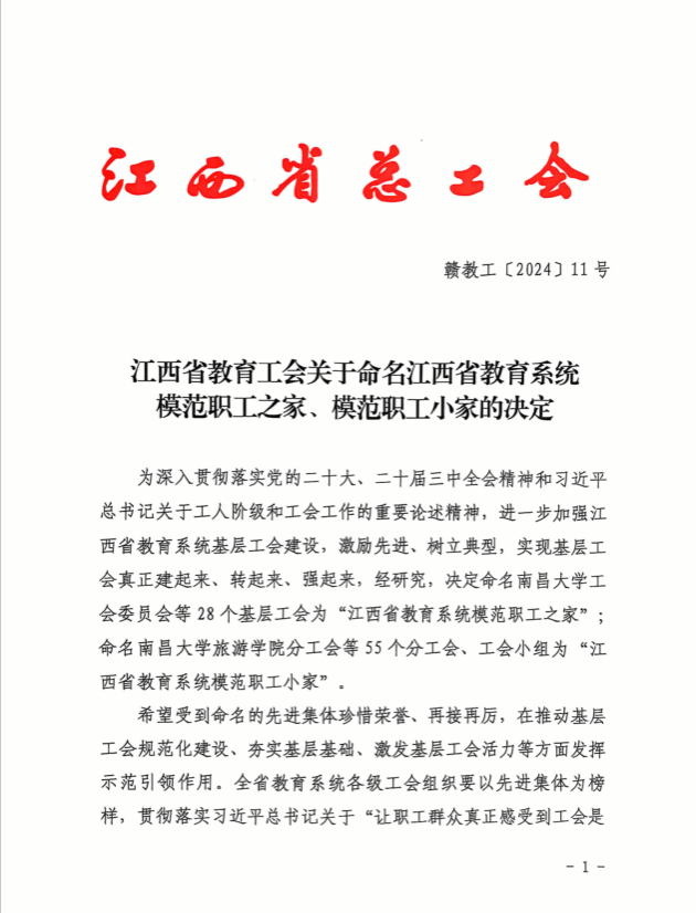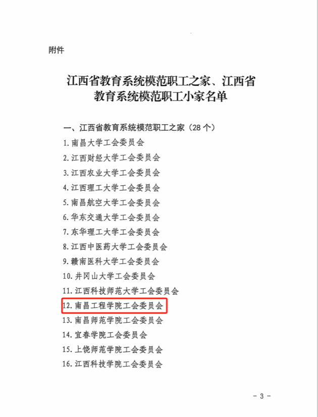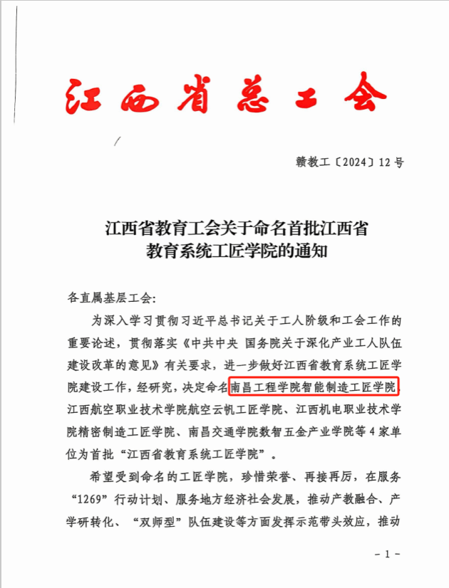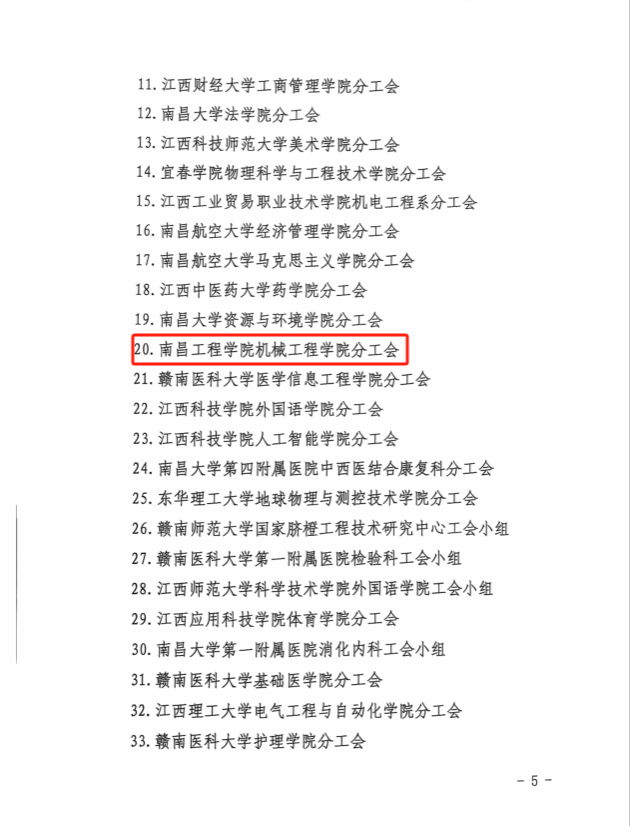 近日,江西省教育工会下发了《江西省教育工会关于命名江西省教育系统模范职工之家、模范职工小家的决定》(赣教工【2024】11号)和《江西省教育工会关于命名首批江西省教育系统工匠学院的通知》(赣教工【2024】12号)的通知。我校工会获批“江西省教育系统模范职工之家”、机械工程学院分工会获批“江西省教育系统模范职工小家”、智能制造工匠学院获批“江西省教育系统工匠学院”称号。