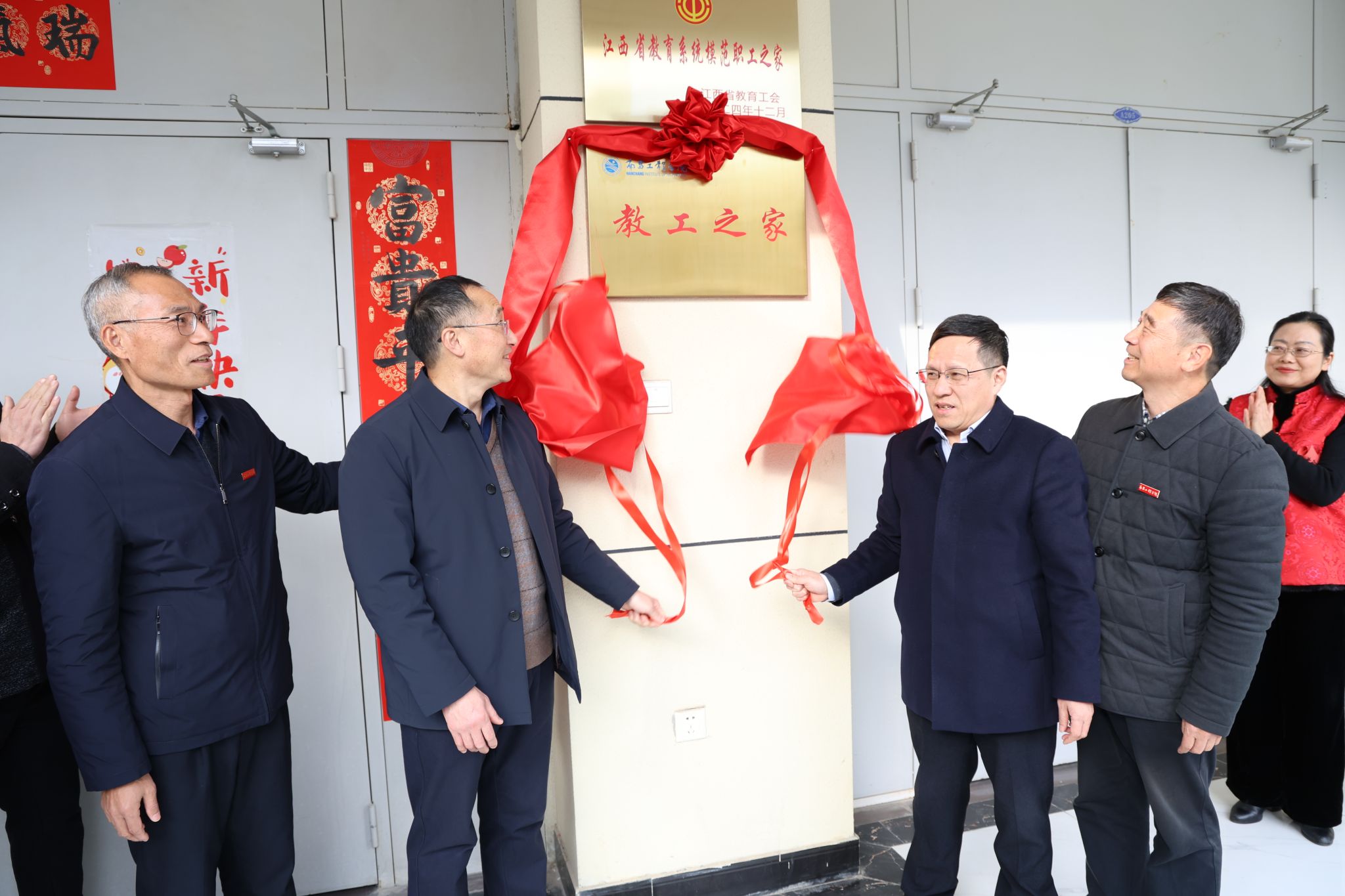1月10日下午,我校“教工之家”揭牌仪式在学校综合服务楼A207举行。校党委书记汪胜前、校长刘祖文、党委副书记吴泽俊、宣传部部长洪恩强出席活动,工会干部和教师代表80余人参加。