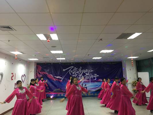 胡盛华对图书馆工会工作给予了肯定,指出图书馆工会要继续发挥工会组织的自身作用,为广大职工“点亮一盏灯、架起一座桥、营造一个家。”图书馆党总支负责人和副馆长为大家送上了热情洋溢的新春祝福。一首深情的《七里香》诗歌朗诵拉开了活动的序幕,青春活力的舞蹈《跳跳糖》和铿锵有力的合唱《没有共产党就没有新中国》将活动氛围推向高潮,在爱国歌曲《我和我的祖国》中活动圆满落幕。随后,大家又进行了猜谜和竞技趣味运动等互动性项目,进一步调动了大家的积极性,增添了节日的气氛。