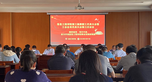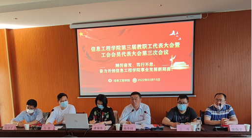 3月15日下午,信息工程学院在信工楼A208会议室召开了以“踔厉奋发、笃行不怠,奋力开创信息工程学院事业发展新局面”为主题的第三届教职工暨工会会员代表大会第三次会议,学院全体教职工参加。校党委委员、副校长陆伟锋应邀到会并讲话。