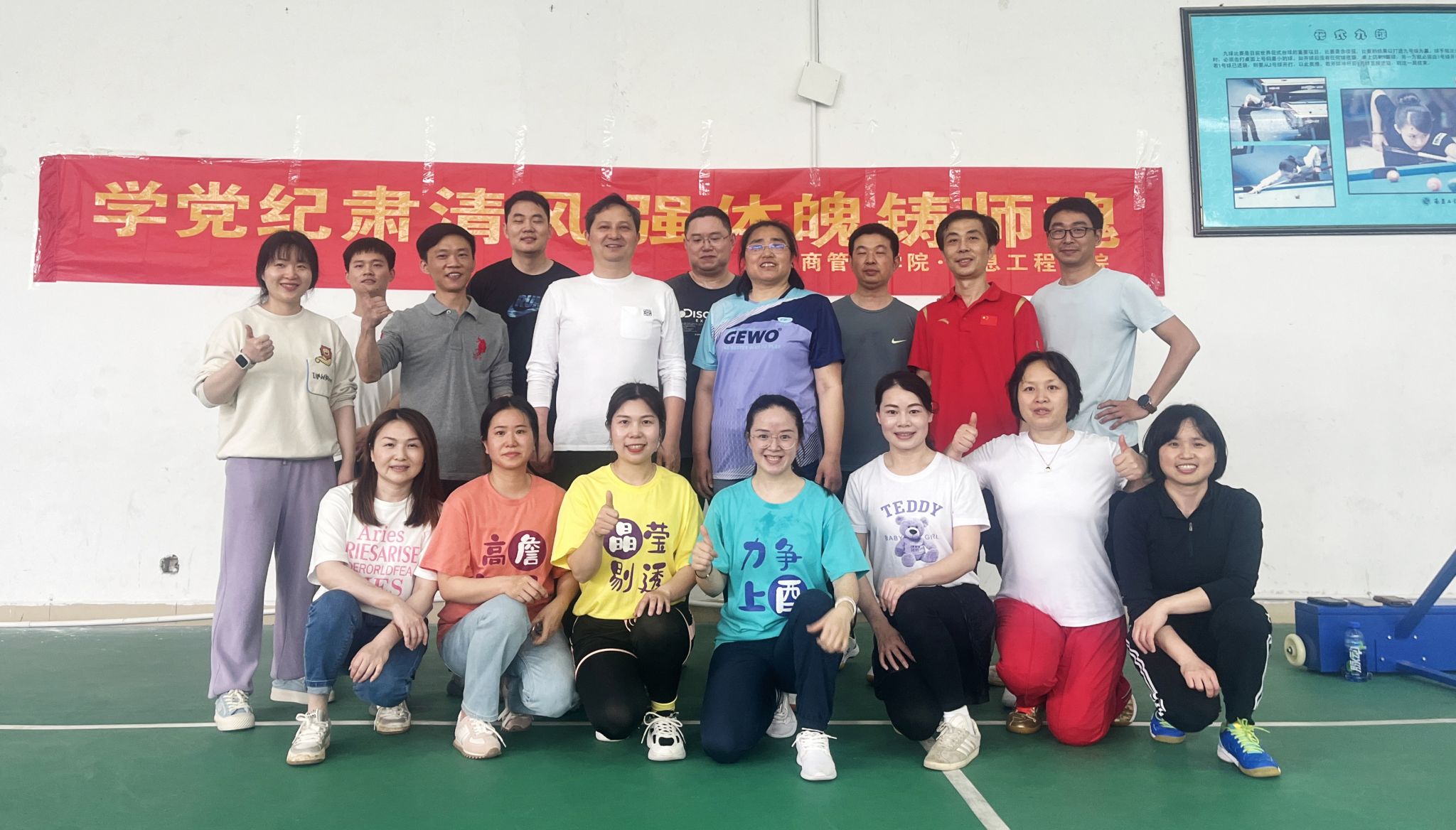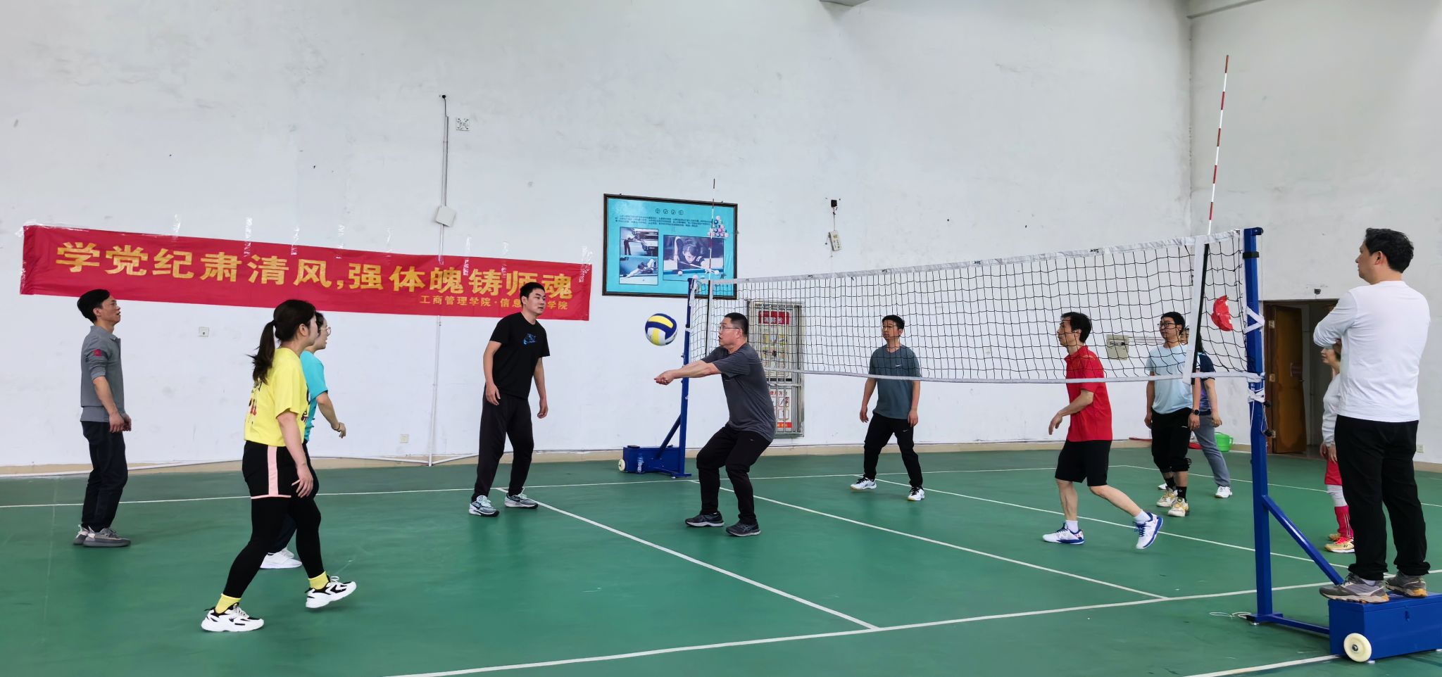 为学习贯彻习近平总书记关于建设体育强国的重要论述,不断丰富教职工文体生活,切实提高教师身体素质,促进兄弟学院之间友好交流,4月19日下午,信息工程学院与工商管理学院以“学党纪肃清风 强体魄铸师魂”为主题,在学校室内体育馆举办了一场气排球友谊赛。两学院党组织和工会相关负责人、部分教职工参加活动。