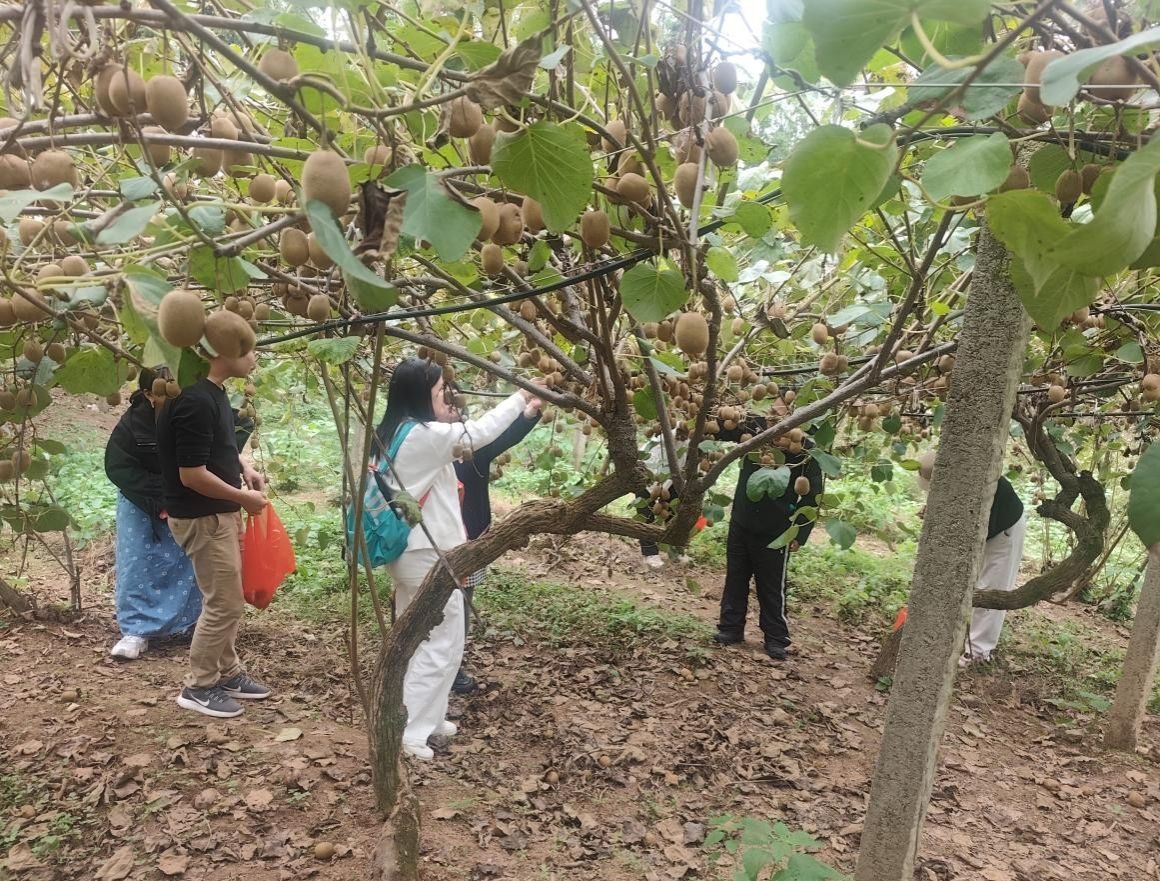 在奉新县猕猴桃基地,大家在田间亲手采摘“水果之王”猕猴桃,体验劳动与收获的乐趣,感受乡村振兴的丰硕成果。