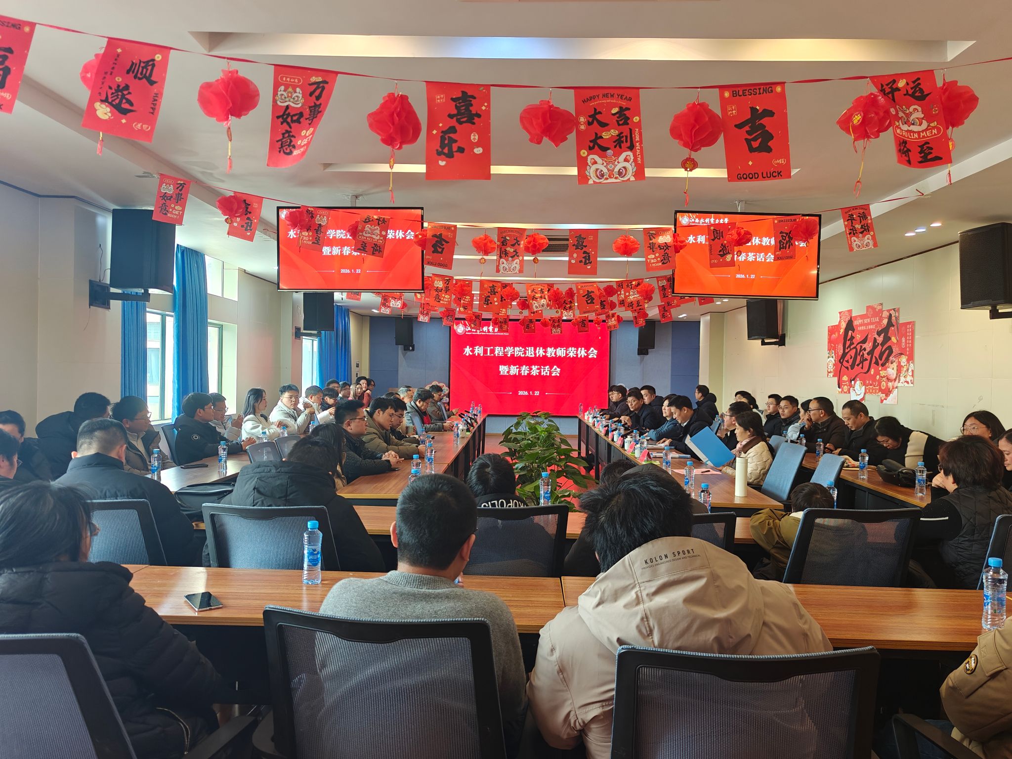 1月22日下午,水利工程学院在逸夫水利楼B400会议室举行退休教师荣休会暨新春茶话会。校党委委员、副校长谢彪,学术副校长王媛出席活动,学院领导班子成员,退休教师以及全体教职工参加活动。