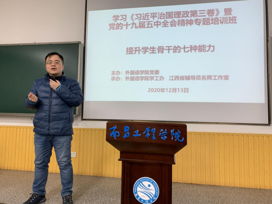 杨铖,男,1982年7月出生,中共党员,外国语学院党委副书记、博士。自2008年入校以来,杨铖同志始终扎根学生工作一线,以责任守育人初心,以敬畏攀科研高峰,以奋斗担时代使命。十三年间,杨铖不仅帮助学生“筑梦”、“圆梦”,也从未停止过自己“逐梦”的脚步。他用自己的汗水书写了一曲由普通辅导员到博士、副教授、硕士生导师、专家型辅导员的奋斗篇章,用自己的满腔热忱,为学生的心灵撑起了一片亮丽的天空。作为一名心理学博士,他总会在学生工作当中多一些“敏感”,多关注一些“细节”,在日常工作中发现了一些特殊生,及时给予科学引导和关心关爱,让学生的大问题变为小问题,小问题变为没问题,消除工作隐患。尤其在去年疫情期间,考虑到同学们可能会因为疫情居家隔离而出现心理不适的情况,他联合学生创作了“美好的故事”散文诗视频,通过学院微信公众号转发,激发学生内心正能量;结合专业知识,在线录制了“与杨博士一起学心理之疫情期间心理调适”视频,对学生进行云辅导,缓解学生心理焦虑。给毕业生进行“云动员”,调整毕业生不良就业心理,引导学生就业。2020年,杨铖获评江西省最美辅导员、江西省首批辅导员名师工作室主持人。